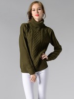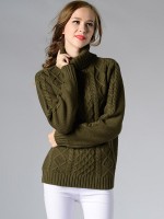 Green Roll Neck Medium Knitted Sweaters