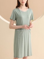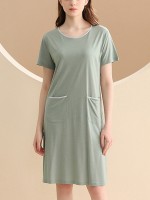 Green Round Neck Short Sleeved Sleepdress with Pockets