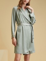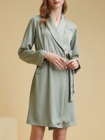 Green Shawl Collar Trimmed Satin Robe with Tie Wasit