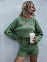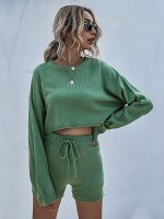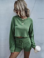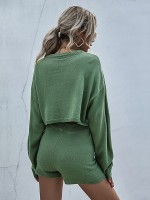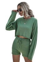Green Stylish Knitted Cropped Sweaters And Shorts Sets