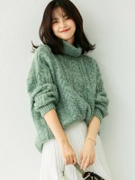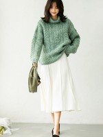 Green Turtleneck Twist Thick Knit Sweaters