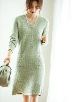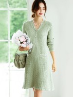 Green V Neck A-line Dress