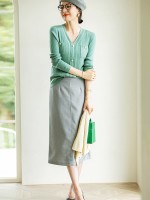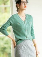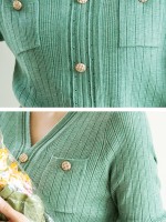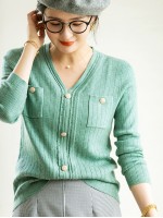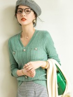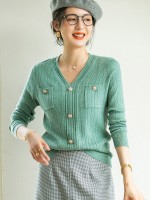 Green V-neck Knit Top with Buttons