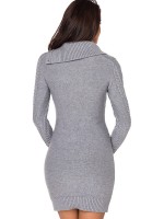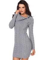 Grey Cable Sweater Dress with Asymmetric Collar
