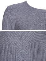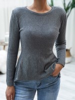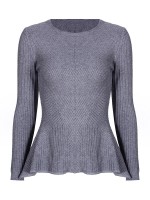 Grey Crew Neck Long Sleeve Lotus Leaf Hem Sweater