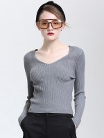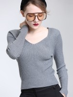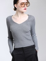 Grey Long Sleeves V-neck Bodycon Knit Sweaters