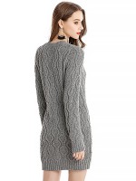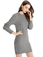 Grey Midi Knit Dresses With Twisted Flowers Pattern
