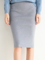 Grey Midi Knitted Wrap Skirts With Back Split