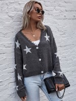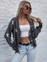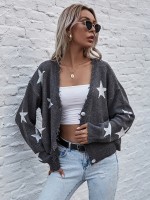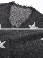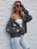 Grey Oversize Shiny Star Knit Cardigan