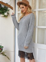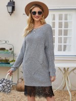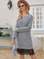 Process: Long sleeves, Round neck, Lace hem, Loose fit