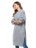 Grey Oversized Two Sides Split Knit Dresses