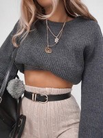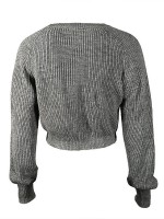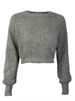 Grey Puff Sleeve Knit Cropped Tops