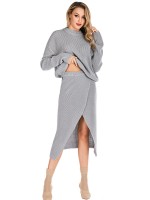 Grey Round Neck Sweater & Midi Dress 2 Piece Set