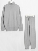 Grey Sporty Knitted Sweater And Jogger Sets