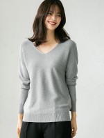 Grey V Neck Knitted Top
