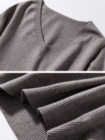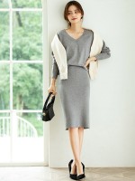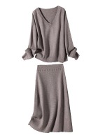Grey V-neck Knitted Sweaters And Skirts Sets