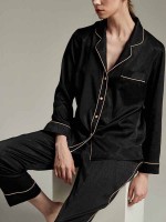 Black Classic Trimmed Satin Long Sleeves Pajama Set