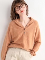 Khaki Cashmere Oversize Long Sleeves Knit Hoodies