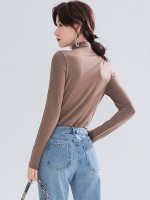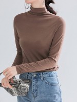Khaki CHIC Stand Collar Long Sleeves Knit Sweaters