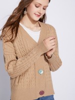 Khaki Colorful Button Knit Cardigan