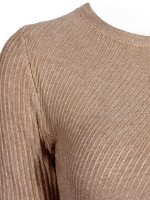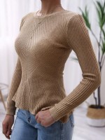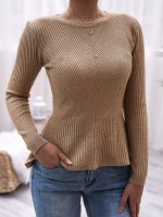 Khaki Crew Neck Long Sleeve Lotus Leaf Hem Sweater