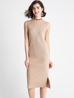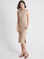 Khaki Crew Neck Ribbed Style Sleeveless Knit Dress