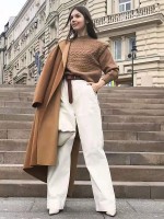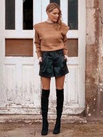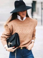 Khaki Crew Neck Twist Long Sleeve Knitted Sweater