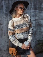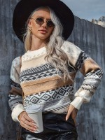 Khaki Diamond Pattern Lazy Style Loose Knit Sweaters