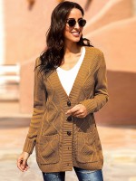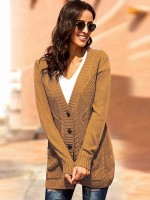 Khaki Knit Midi Cardigans with Pockets