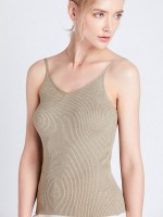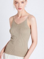 Khaki Off Shoulder Shiny Strap Knit Vest