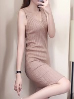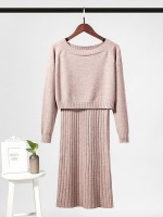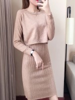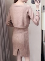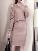 Khaki Off the Shoulder Sweater with Vest Knitted Dress