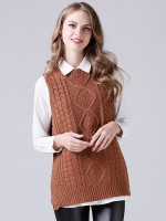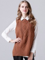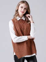 Khaki Oversize Crochet Side Split Vest