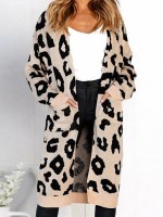 Khaki Oversize Maxi Knit Cardigan with Leopard Pattern