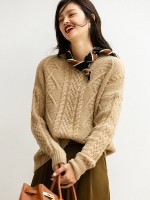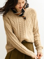 Khaki Retro Twist Crew Neck Knit Sweaters
