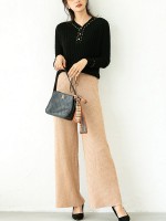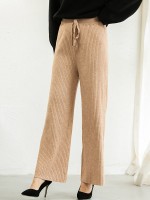 Khaki Ribbed Wide Leg Knit Pants