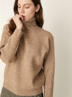 Khaki Roll Neck Warm and Loose Knit Sweaters