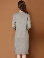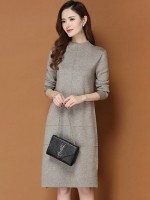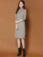 Khaki Round Neck Shift Split Knit Dress