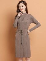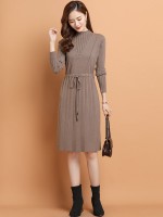 Khaki Tie Waist Midi Dress with Rhinestone Decoration