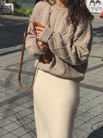 Khaki Twist Loose Round Neck Long Sleeve Sweater