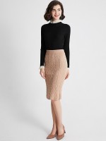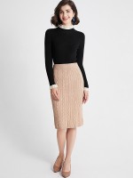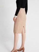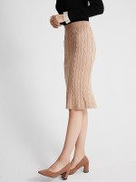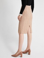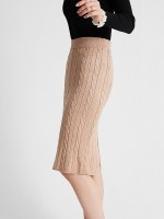 Khaki Twist Pattern Midi Knitted Skirts