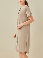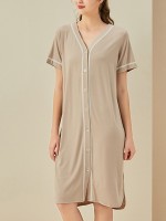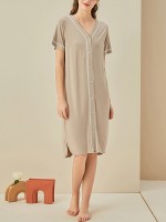 Khaki V-neck Front Button Short Sleeved Sleepdress