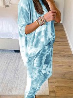 Light Blue Gradient Print Knit Loungewear Set