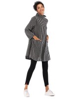 Light Grey Striped High Neck Cape Style Knitted Dress