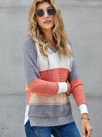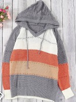Multi-Color Splicing Side Split Oversize Knit Hoodies