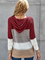 Multi-Color Splicing Side Split Oversize Knit Hoodies