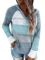 Multi-Color Splicing Side Split Oversize Knit Hoodies
