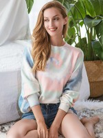 Multicolored Pullover Long Sleeve Smudge Tie-dye Knit Sweater