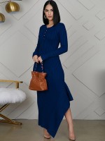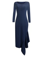 Navy Blue Round Neck Asymmetrical Maxi Dress