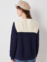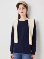 Navy Blue Round Neck Knit Top with Cape