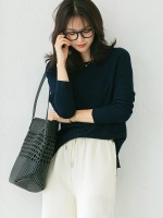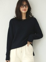 Navy Blue Round Neck Long Sleeves Split Sweaters